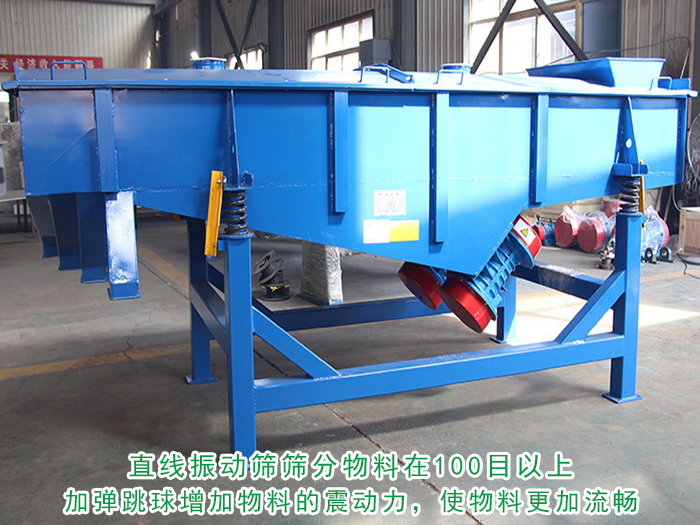 2、直線振動篩篩分物料在100目以上的,物料流動性較小的物料,是需求加彈跳球增加物料的震動力,使物料順暢的篩分下來。