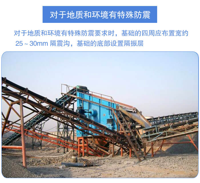 對于地質和環境有特殊防震要求時,基礎的四周應布置寬約 25~30mm 隔震溝,基礎的底部設置隔振層,基礎底部夯實之后,用水泥、煤渣、瀝青鋪設厚度約 200mm,在此隔振層上再澆灌混凝土。