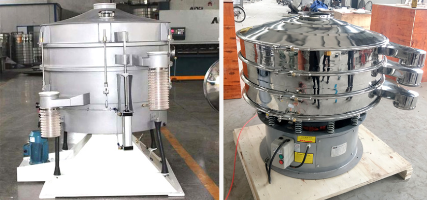 普通圓形振動篩是通過振動器的高速振動進行篩分,它會破壞物料的配置。所以它不太適用于雞精、味之素、顆粒糖等粒狀結晶焦脆性物料。搖擺篩工作是輕微的橢圓擺動運動,沒有振動力,所以不會破壞物料。